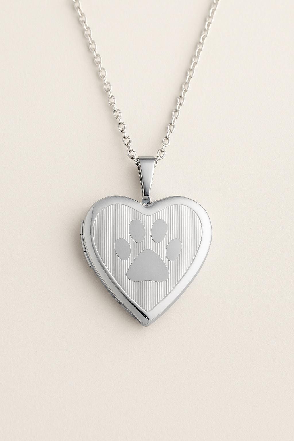 Sterling Silver Pet Cremation Ash Locket: Paw Print Heart Keepsake