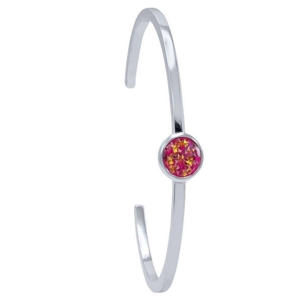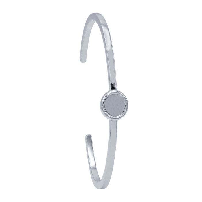This sterling silver cuff bracelet features a round bezel mountings with clean, simple styling. The 10mm bezel will include your flowers with resin.