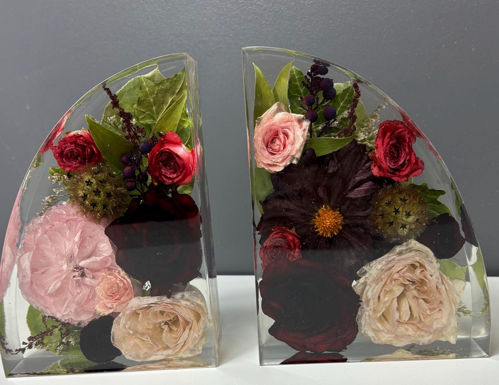 Custom Bookends Floral Keepsake (DEPOSIT), Bridal Bouquet Keepsake, Flower Preservation, Dried Flowers