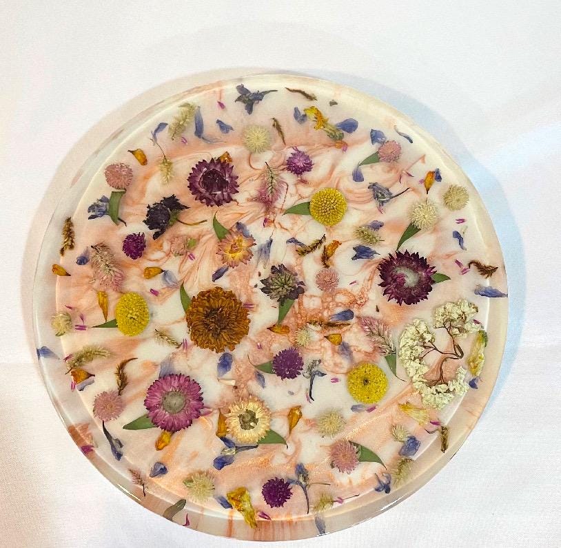 - Each piece is custom made with resin and as such can have some imperfections such as micro bubbles. Sometimes larger bubbles will also escape from air pockets in the flowers. They can also sometimes become trapped under petals along the sides or bottom of your keepsake causing an indentation. There is no way around the occurrence of bubbles but we do our best to minimize them.