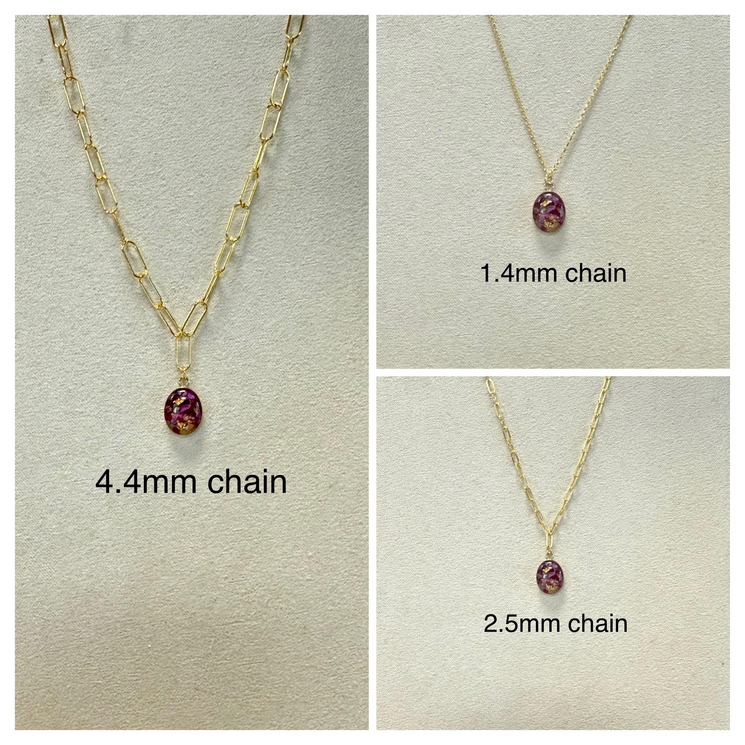 This round 14k yellow gold-filled pendant is a beautiful way to preserve your bridal flowers in resin. It is for the pendant only. A chain is sold separately and can be added by following the link below. Please comment when purchasing if you want the 8mm 10mm or 12mm size.