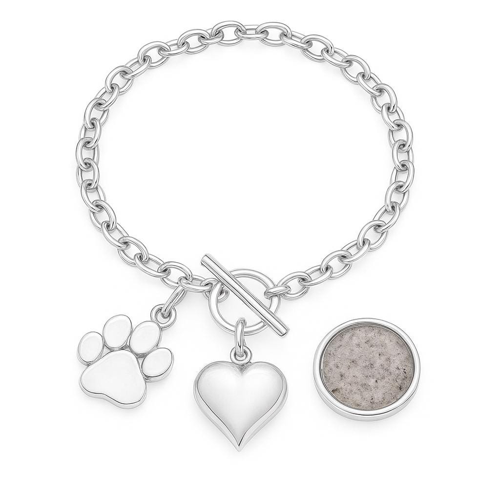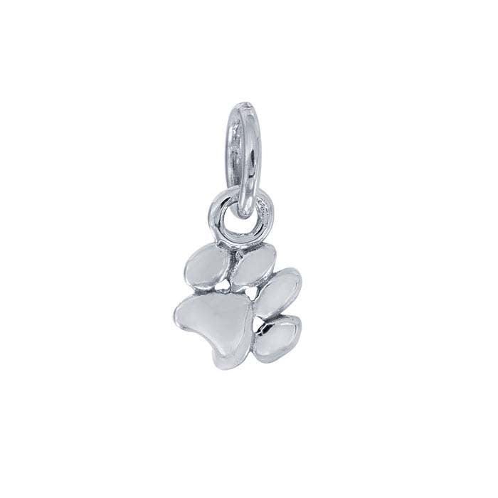 Add to your charm bracelet this lovely .925 sterling silver paw-print charm. Positioned at an angle, it makes a great addition to a charm bracelet. This charm has a smooth, bright finish. A jump ring and lobster claw are included so you can add to your bracelet or purchase one of our charm bracelet options by following the links below.