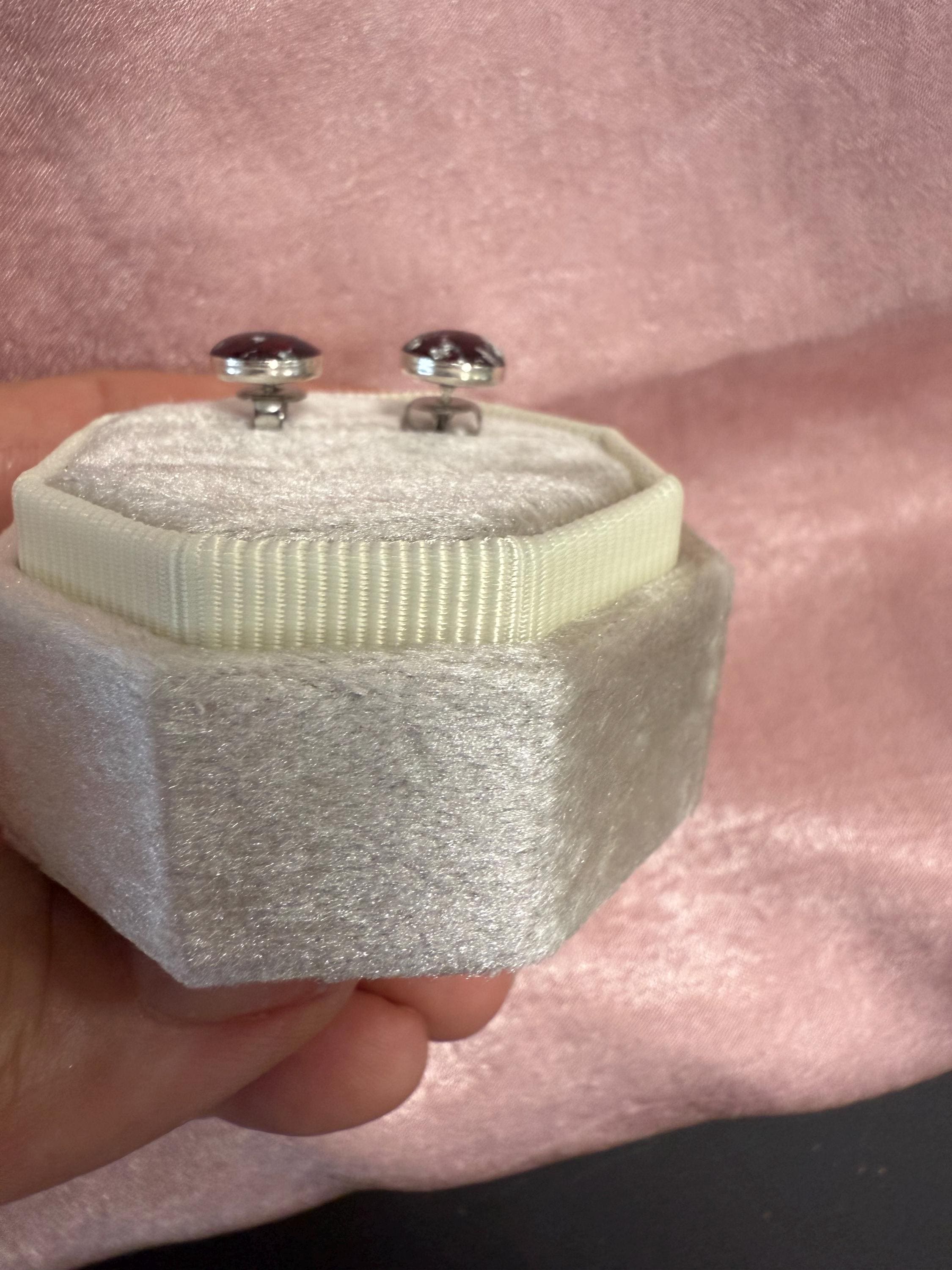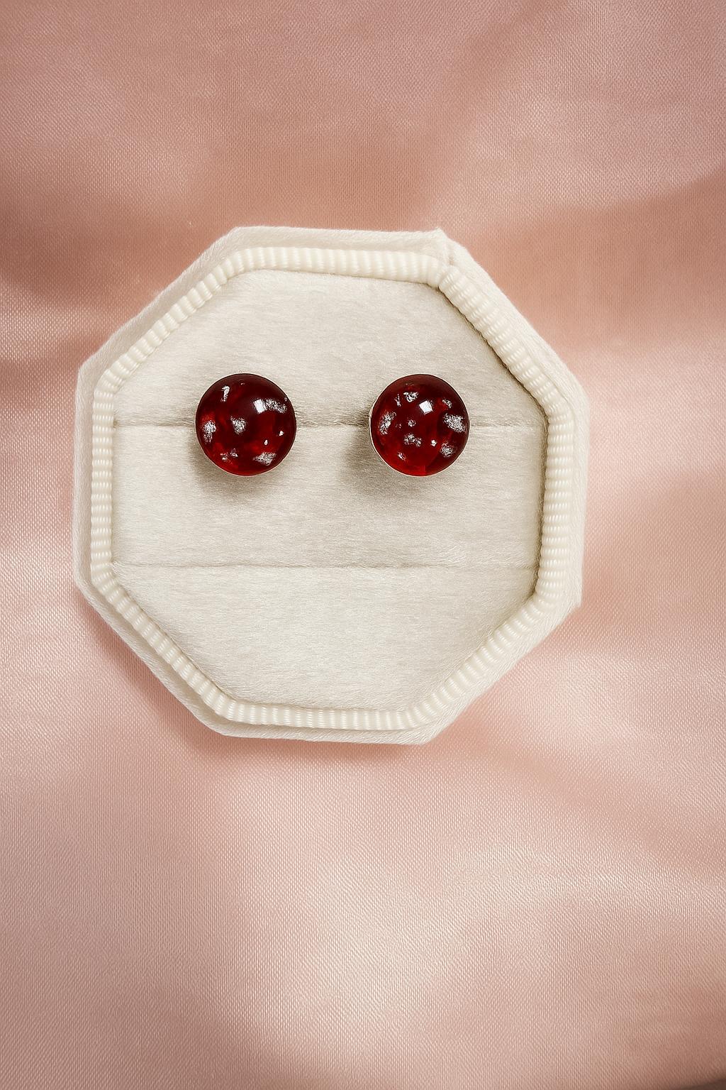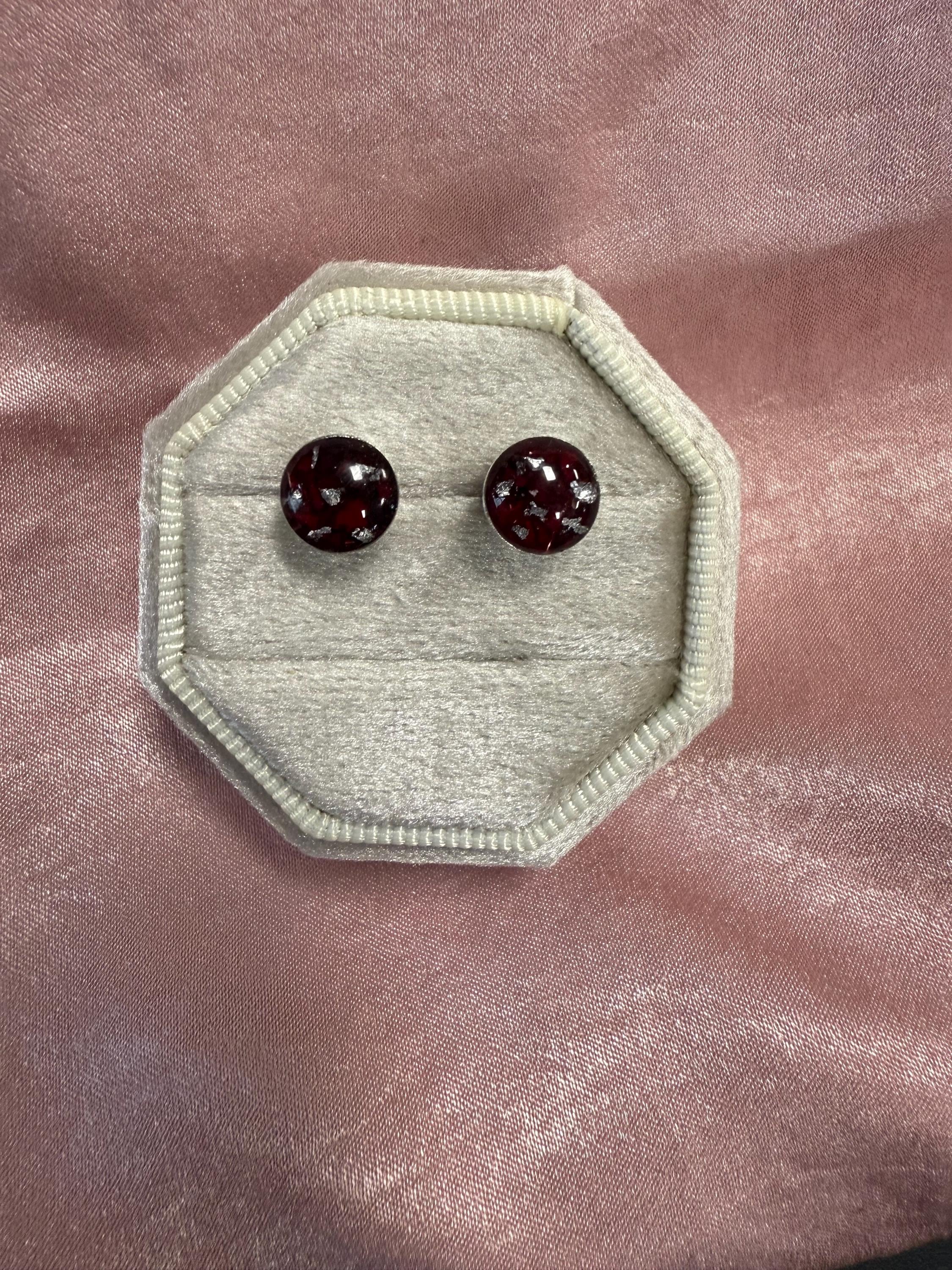 These .925 sterling silver post earrings feature a round bezel mounting 6mm, 8mm or 10mm in size. Small bits of silverflake will be added unless you ask me to omit.