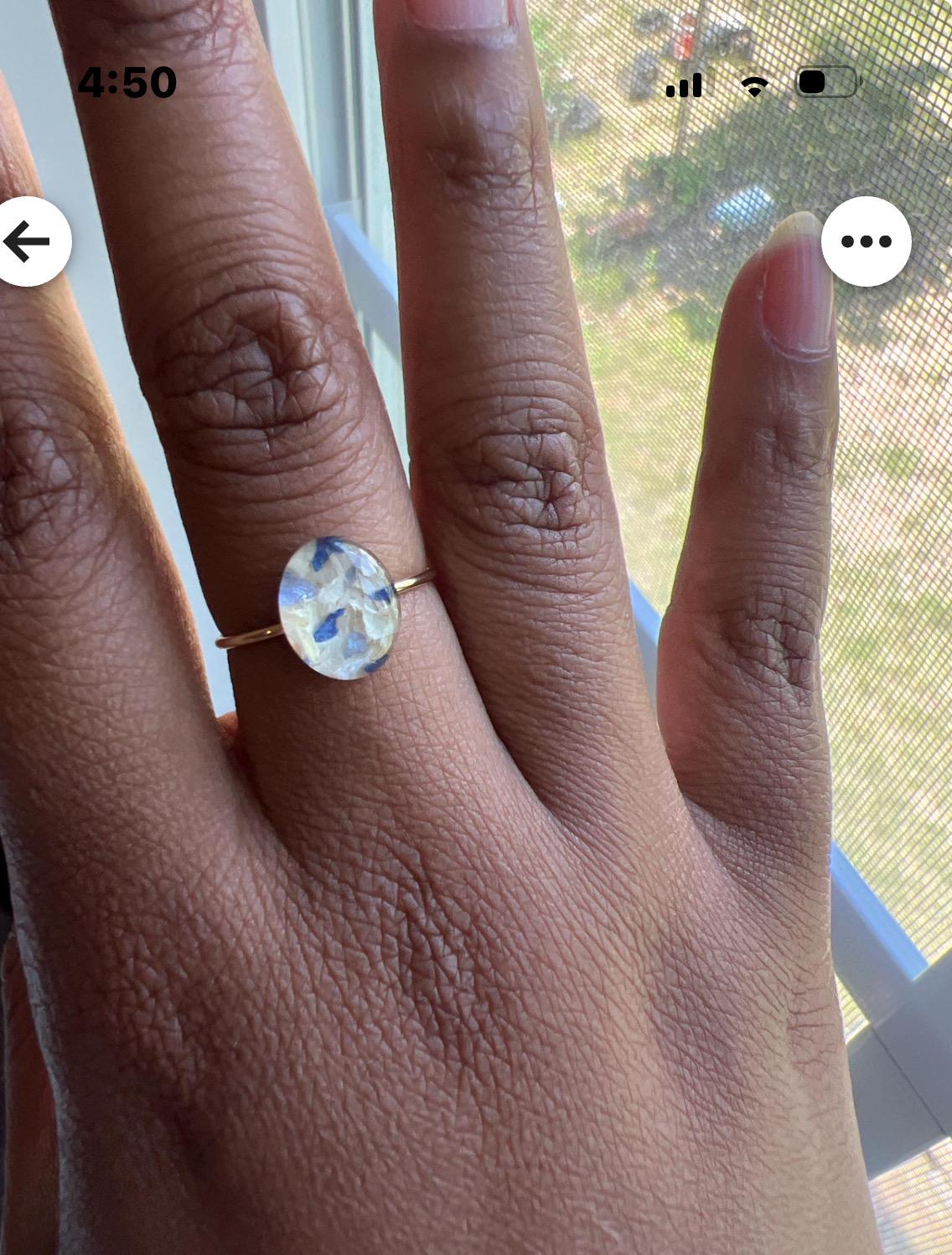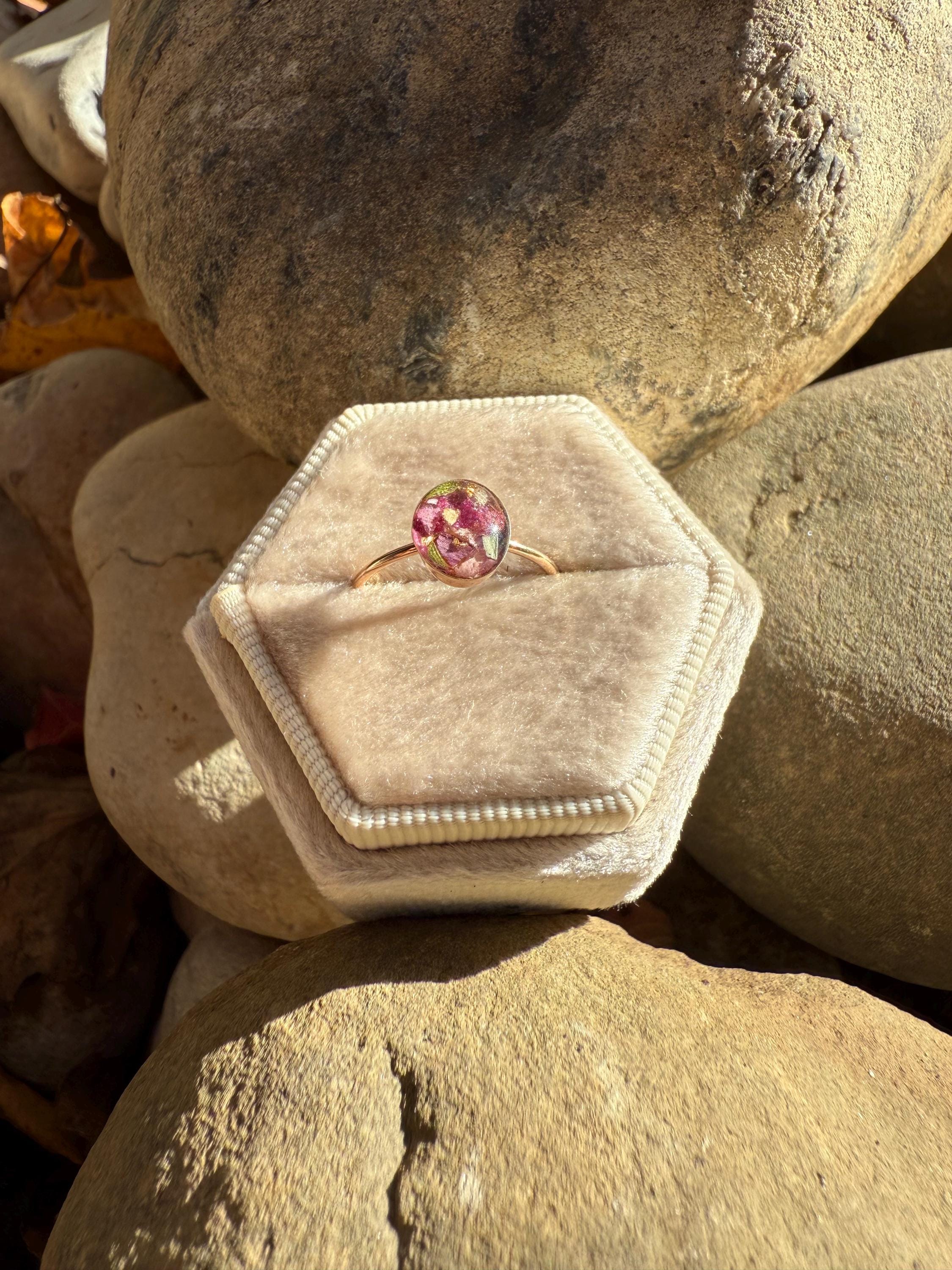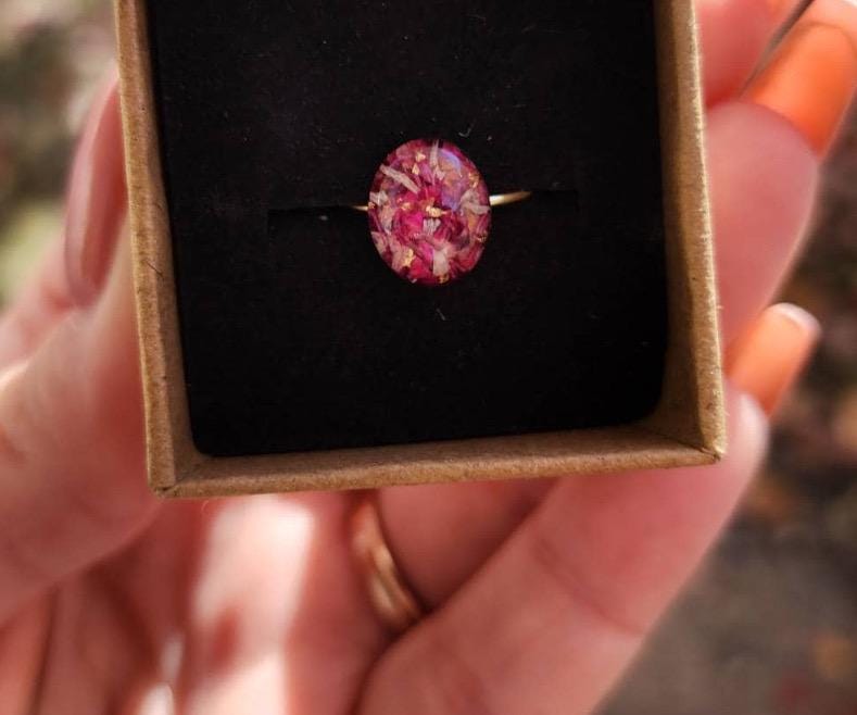 14k Gold-filled oval ring made with your bridal flowers. A small amount of gold flakes will be added unless you specify otherwise.