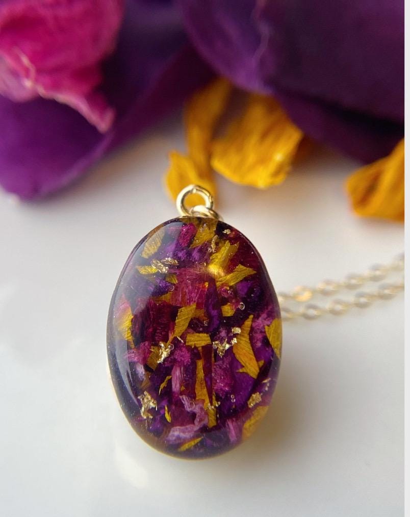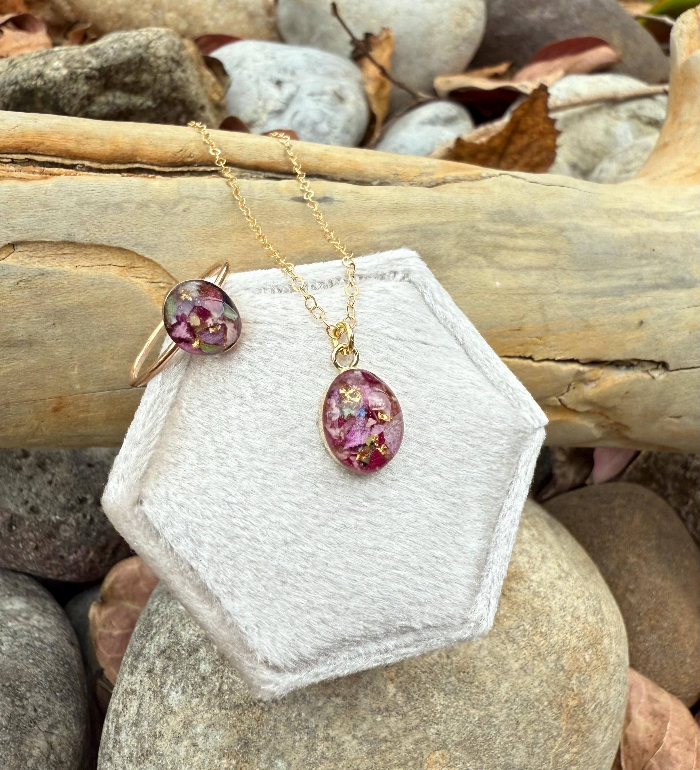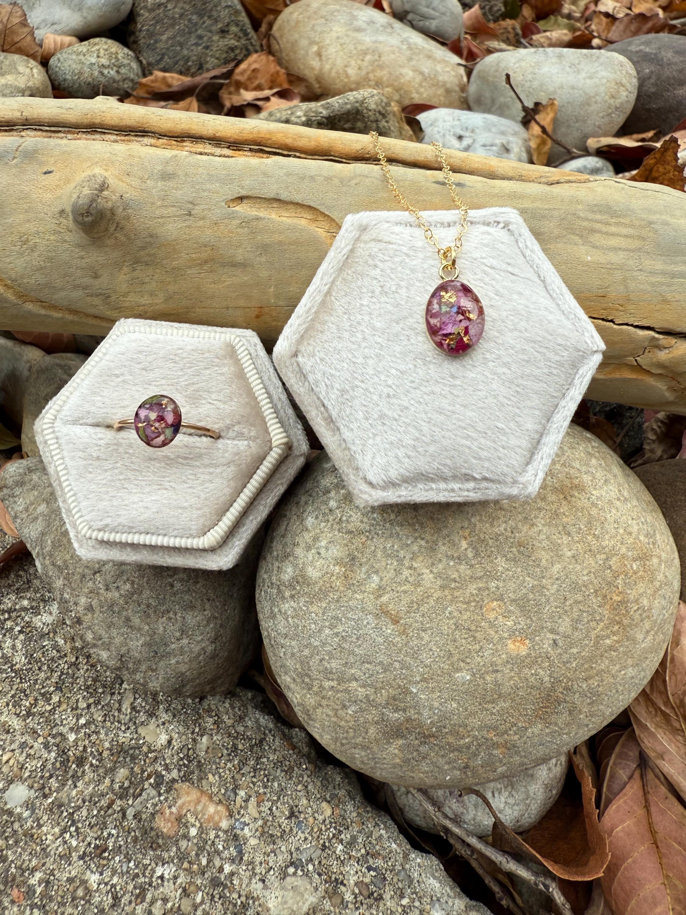 A matching set with a pendant and ring made with your flowers! This set consists of: