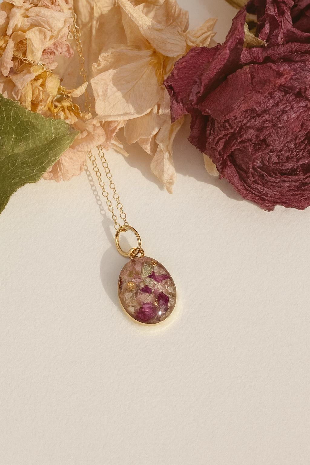 It is a beautiful way to preserve your bridal flowers in resin. This is a $30 savings compared to ordering individually. A chain is sold separately and can be added by following the link below.