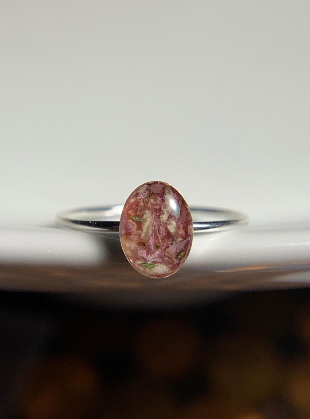 Custom Floral Oval Ring: .925 Sterling Silver jewelry with your flowers preserved