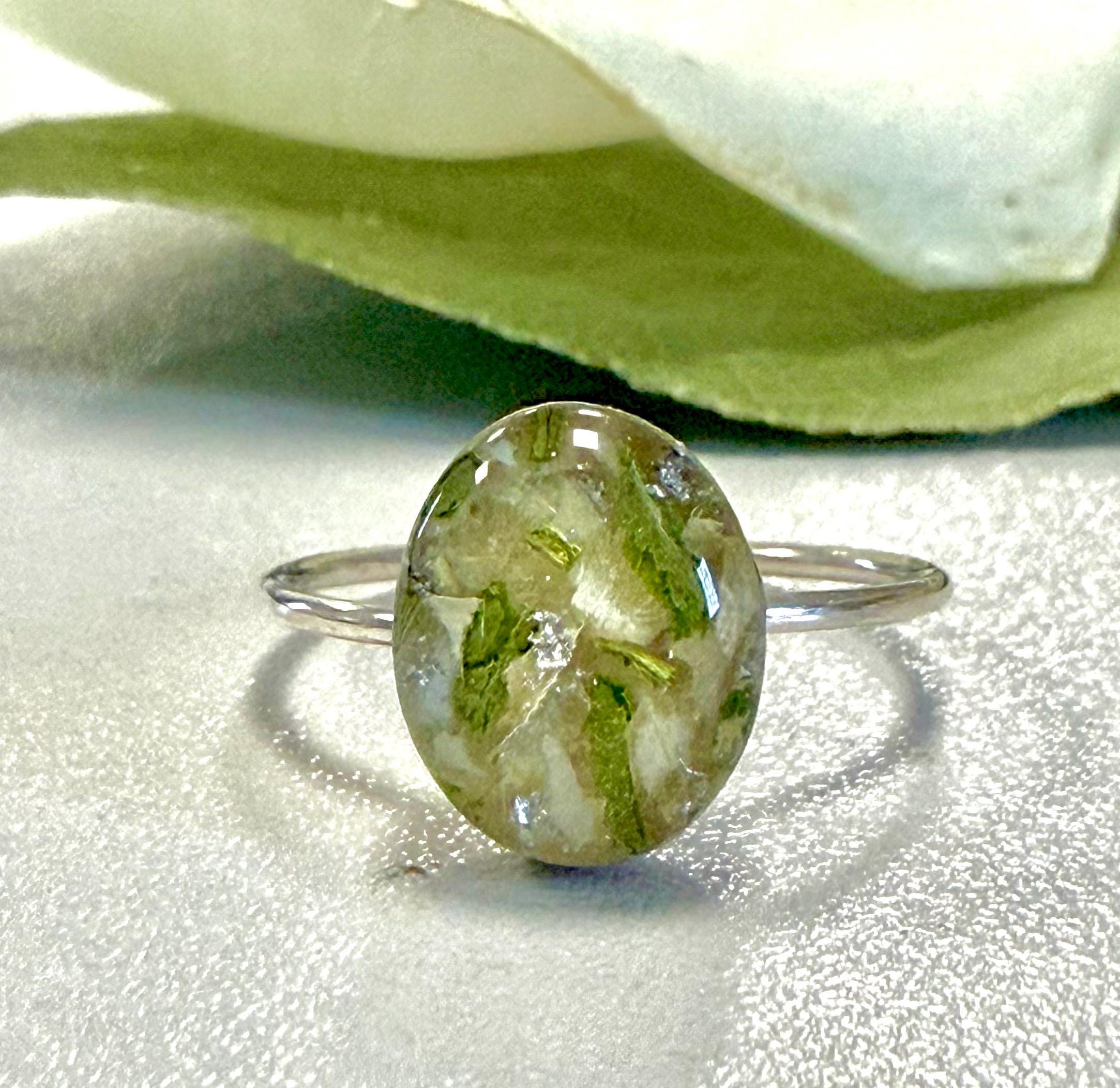 Sterling Silver oval ring made with your bridal flowers. A small amount of silver flakes will be added unless you specify otherwise.