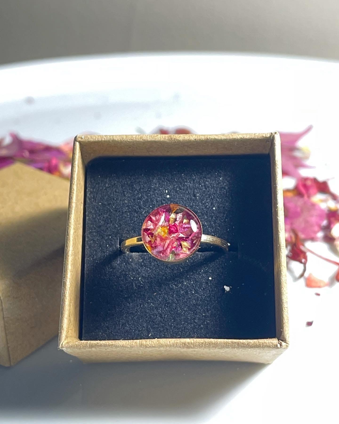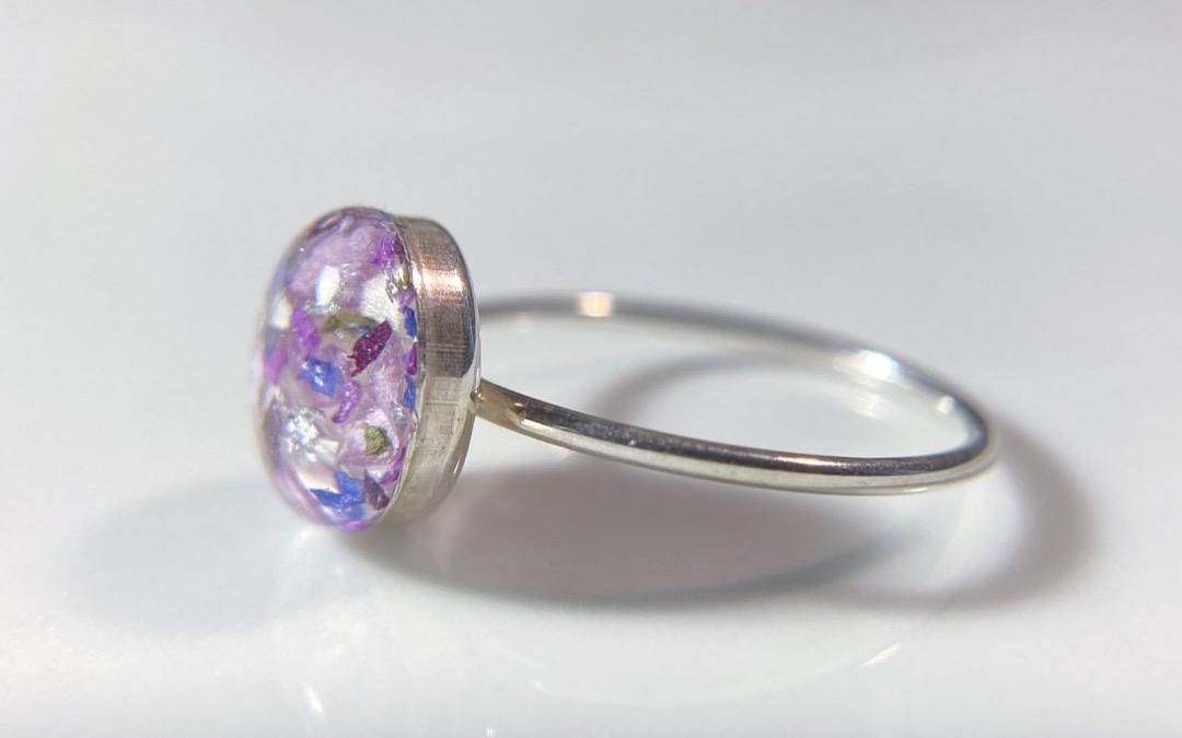 Custom Floral Ring: .925 Sterling Silver round ring with your flowers preserved