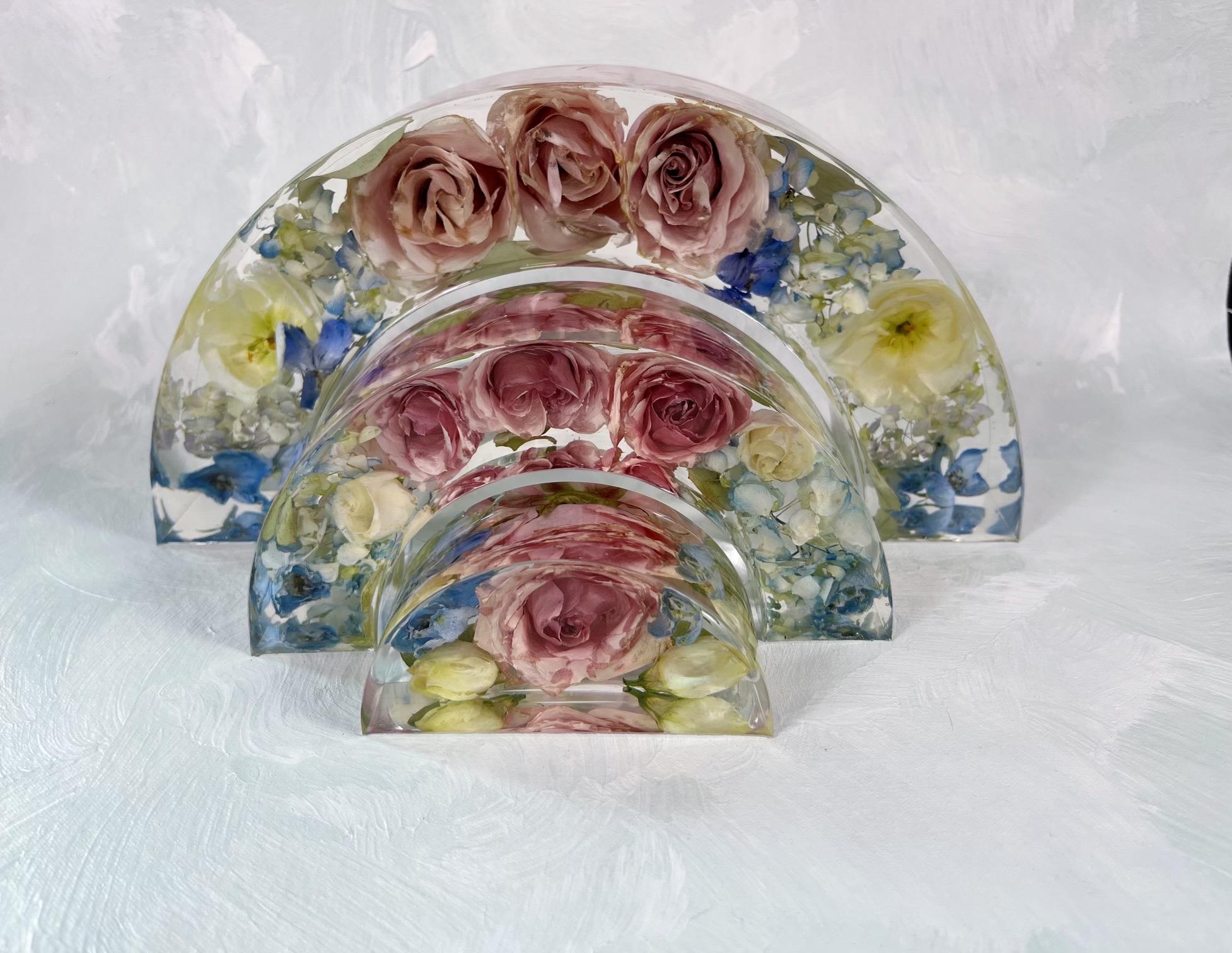 Rainbow Decor, Stackable Three Piece Set, Bouquet Resin Keepsake: Floral Preservation (Deposit)