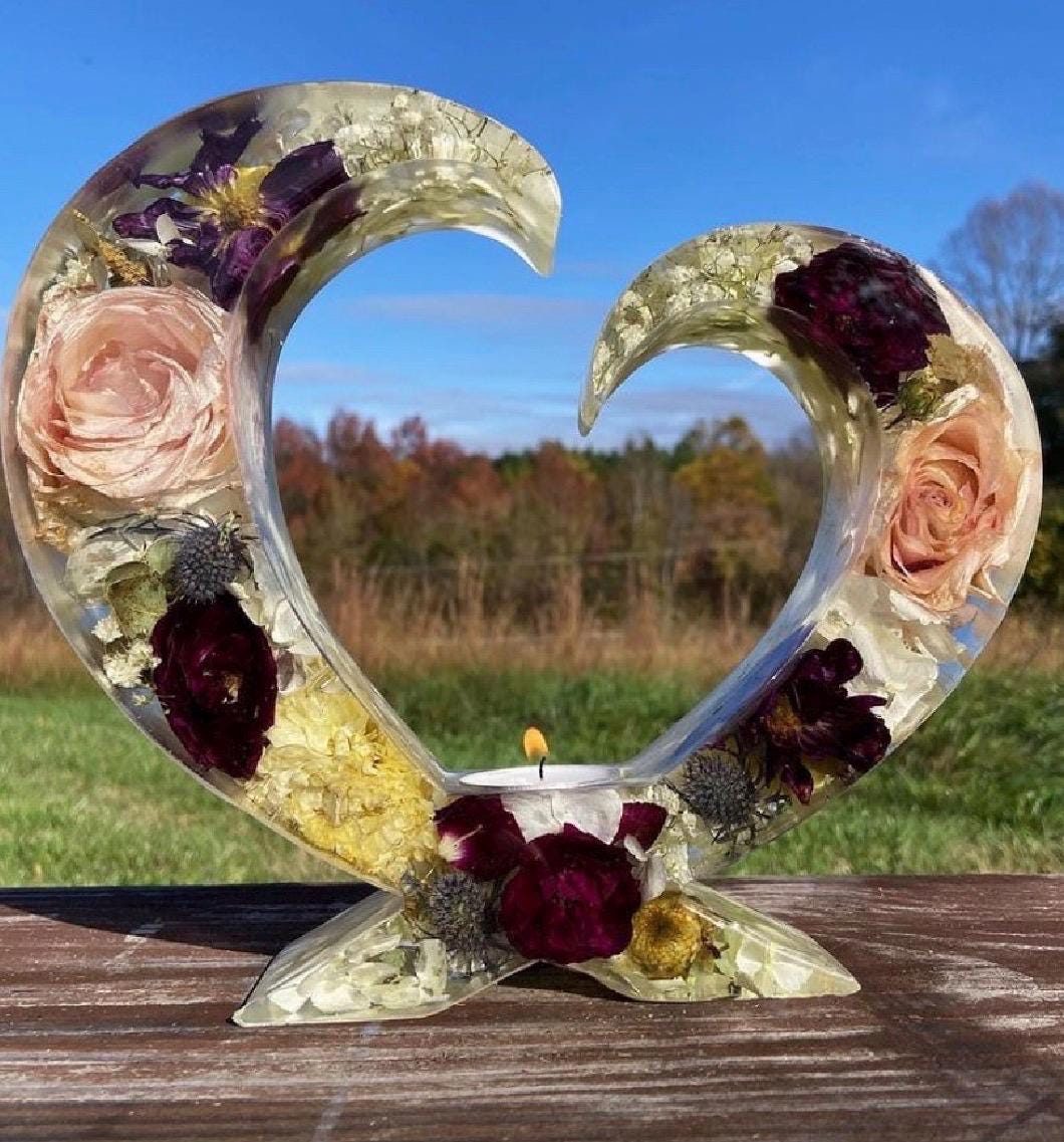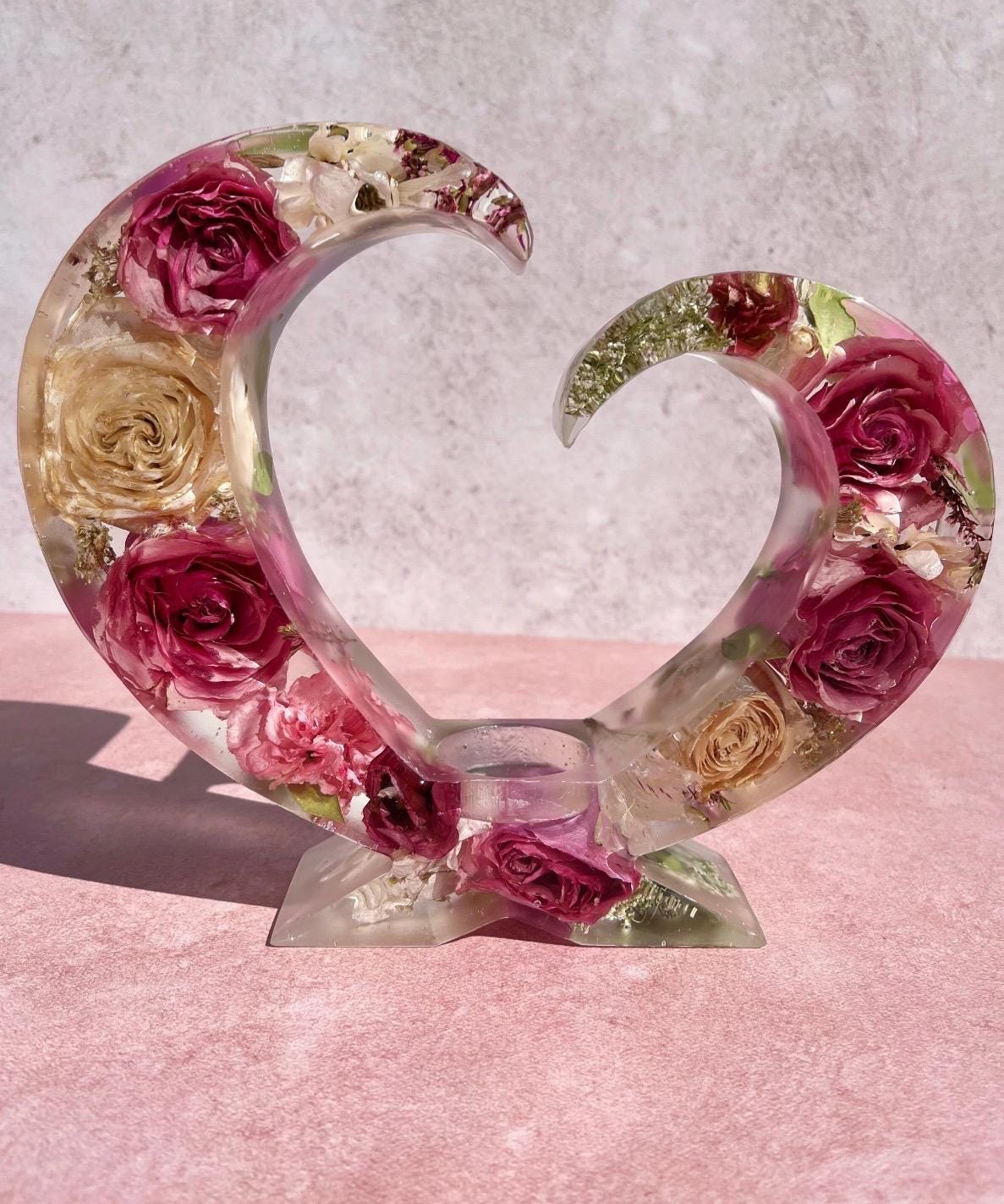Custom Heart Votive Floral Keepsake (DEPOSIT), Bridal Bouquet Keepsake, Flower Preservation, Unique Wedding Gift