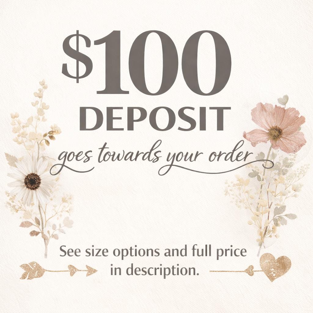 This deposit goes towards your order total. You are paying the DEPOSIT only today. The final balance will be due when we are ready to begin pouring the resin over your flowers.