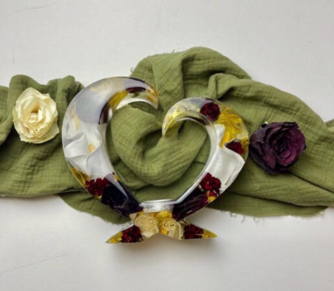 - Each piece is custom made with resin and as such can have some imperfections such as micro bubbles. Sometimes larger bubbles will also escape from air pockets in the flowers. They can also sometimes become trapped under petals along the sides or bottom of your keepsake causing an indentation. There is no way around the occurrence of bubbles but we do our best to minimize them.